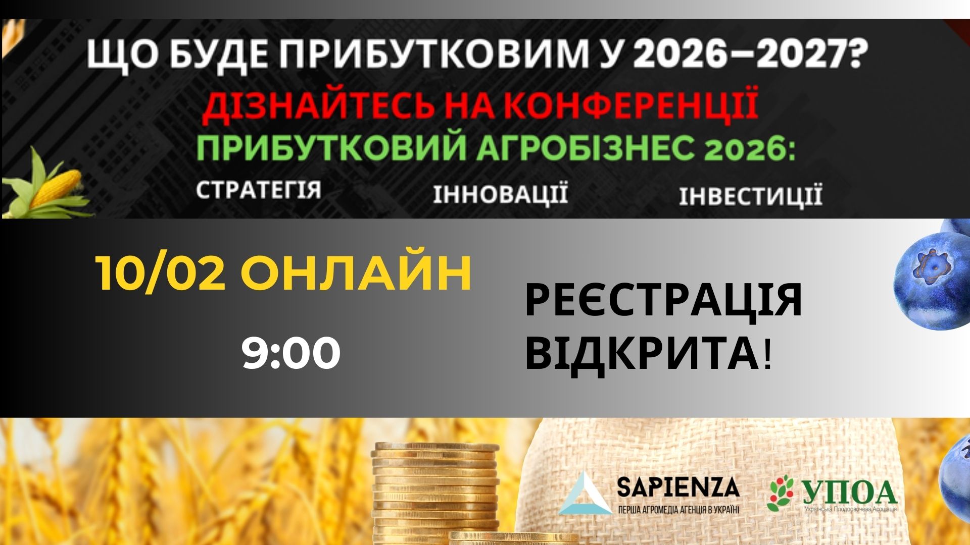Конференція «ПРИБУТКОВИЙ АГРОБІЗНЕС 2026» відбудеться 10 лютого в онлайн-форматі - УПОА Українська плодоовочева асоціація